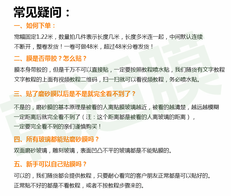 磨砂貼膜、多種漸變膜、防爆膜、隔熱防曬膜等